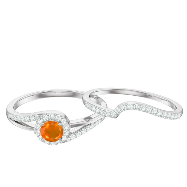 Elegant Bridal Ring Set Of 2 With Fire Opal And Diamond In Gold Aaa Quality 14k White Gold Size Us 12 00 Walmart Com
